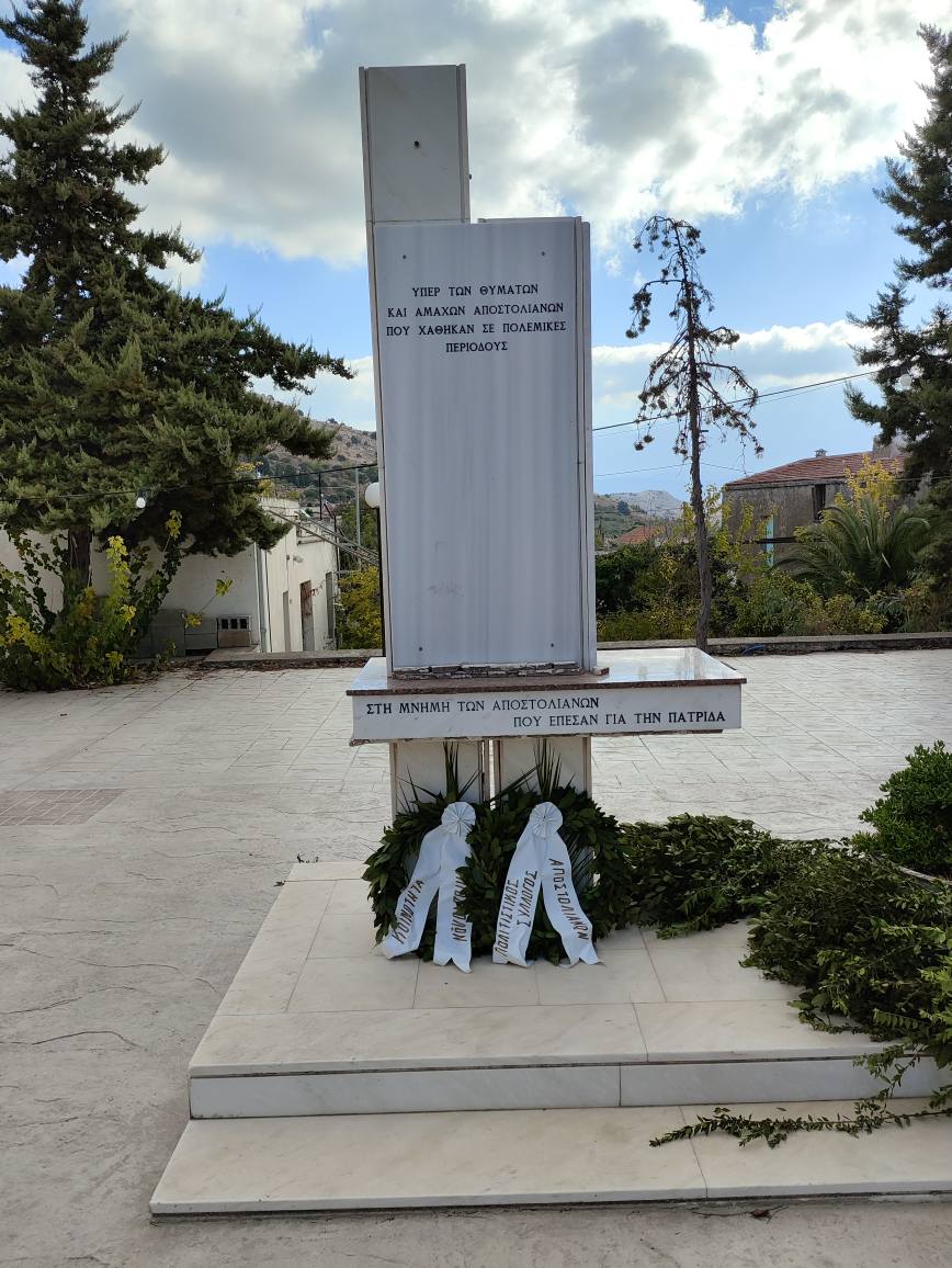 Από την σημερινή κατάθεση στεφάνου από τον πρόεδρο του Πολιτιστικού μας συλλόγου και τον πρόεδρο της τοπικής κοινότητας Αποστόλων στο μνημείο των πεσόντων Αποστολιανών!!