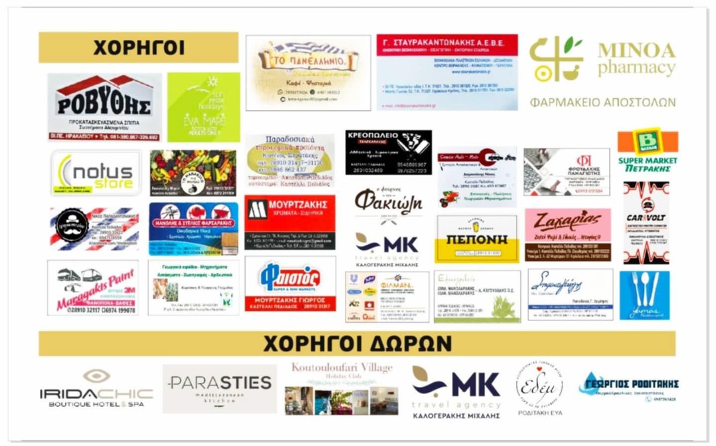 Επίσης Θα ήταν μεγάλη παράλειψη να μην ευχαριστήσουμε τους χορηγούς του γλεντιού μας καθώς και τους χορηγούς που προσέφεραν τα δώρα για την λαχειοφόρο αγορά!!