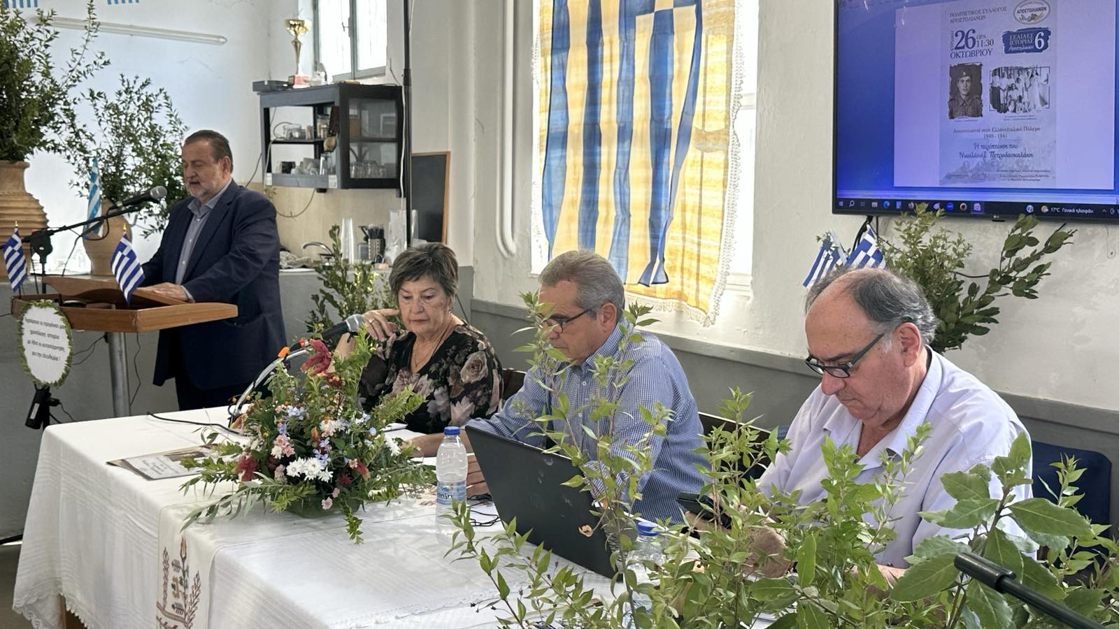 Παρουσιάστηκαν στοιχεία που συνέλεξε η αντιπρόεδρος του Δ.Σ. Κα Μαρία Δαμιανάκη και ακούστηκε ηχητικό απόσπασμα του Νικολάου Ι.Πετροδασκαλάκη , καταγραμμένο από τον γιο του Γιάννη Πετροδασκαλάκη,στο οποίο εξιστορούσε μνήμες και γεγονότα από την δύσκολη εκείνη περίοδο!!