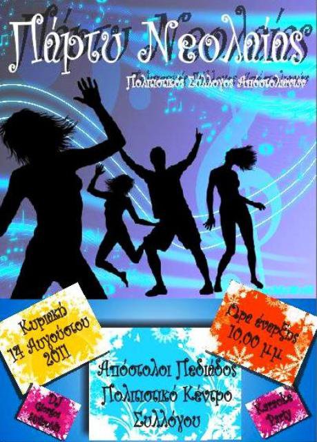 ΕΚΔΡΟΜΗ - ΠΡΟΣΚΥΝΗΜΑ ΣΤΗ ΤΗΝΟ ΠΑΡΤΥ ΝΕΟΛΑΙΑΣ 2011 Το βράδυ 14 Αυγούστου πραγματοιήθηκε στο χώρο του Συλλόγου Πάρτυ με τη συμμετοχή πλήθος κόσμου να διασκεδάζει μέχρι το ξημέρωμα με πολύ χορό και πολύ καραόκε!!!