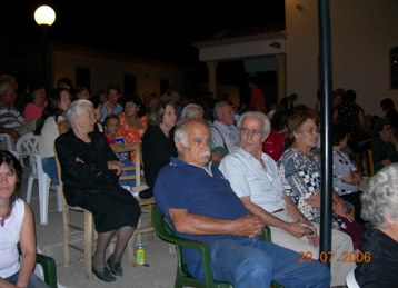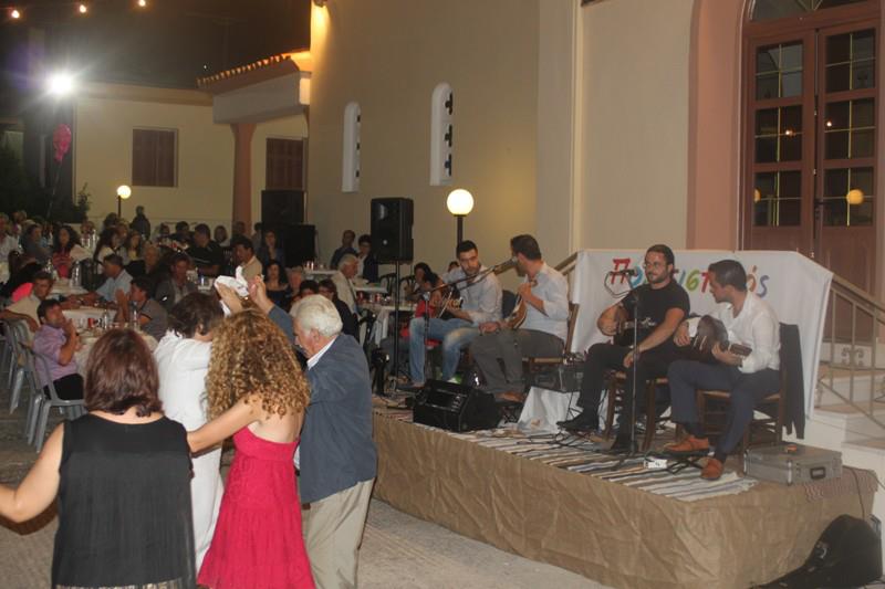 ΚΡΗΤΙΚΟ - ΛΑΪΚΟ ΓΛΕΝΤΙ 29-8-2009 Το Σάββατο 29-8-2009 πραγματοποήθκε από το σύλλογο μας Κρητικό-Λαϊκό γλέντι στο προαύλιο χώρο του Πολιτιστικού Συλλόγου. Σκοπός της εκδήλωσης ήταν να τιμήσουμε το συγχωριανό καλλίτέχνη κ. Νίκο Πετρουγάκη. Η όλη εκδήλωση στέφθηκε με απόλυτη επιτυχία. Παρεβρέθηκε πλήθος κόσμου όπως και γνωστά ονόματα της κρητικής μουσικής όπως ο κ Ροδάμανθος Ανδρουλάκης και ο πρόεδρος του Παγκρήτιου Συλλόγου Κρητικής Μουσικής κ Νίκος Ηλιάκης. Επίσης οι συγχωριανοί μουσικοί Αντ. Μαλλιωτάκης και Βασ. Δαμιανάκης. Ο χορός και το τραγούδι κράτησε μέχρι τις πρώτες πρωινές ώρες της Κυριακής.