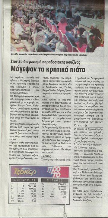 Σάββατο 1-6-2013 Συνάντηση Πολιτιστικών Συλλόγων Με αφορμή την κλήρωση για την υποτροφία ενός φοιτητή, που έκανε δώρο η σχολή μαγειρικής KAPPA STUDIES στους Πολιτιστικούς Συλλόγους που συμμετείχαν στο 1ο ΦΕΣΤΙΒΑΛ ΟΙΚΙΑΚΗΣ- ΚΑΘΗΜΕΡΙΝΗΣ ΚΡΗΤΙΚΗΣ ΚΟΥΖΙΝΑΣ, οι 15 Σύλλογοι (Αποστολιανών, Αυλής, Βόνης, Γαλατά, Γαρύπας, Γερακίου,Ζωφόρων, Θραψανού, Κασταμονίτσας, Λευκοχωρίου, Πολυθέας, Ρουσοχωρίου, Σαμπά, Σμαρίου, Τουρλωτής ) βρέθηκαν ξανά, το Σάββατο 1-6-2013 ώρα 7:30 μ.μ στα γραφεία του Πολιτιστικού συλλόγου Αποστόλων. Την υποτροφία τελικά κέρδισε ο Π.Σ. Γαλατά.